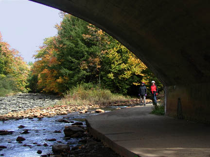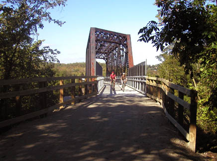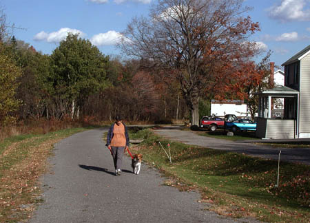 HopscotchThe village of St George, between the Rockland and Kennerdell tunnels. The roads aren’t paved in this small riverside village, so the trail is not only out of traffic; it’s also the only paved place in the village. |