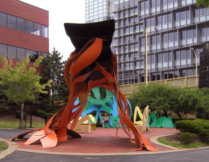 Sculpture ParkNotes: The sculpture park sits between office buildings and the Allegheny River. This is part of Pittsburgh’s very successful redevelopment of the riverfronts as public recreational space. |