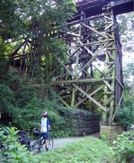 Anticipating the Bollman BridgeAllegheny Highlands segment of the Great Allegheny Passage in Pennsylvania This historic 135-year-old cast-iron Bollman bridge once carried the B&O railroad over Wells Creek. It has been moved to carry the Great Allegheny Passage over Scratch Hill Rd. The approaches to the bridge are still under construction, and the trail community eagerly anticipates the finishing touches