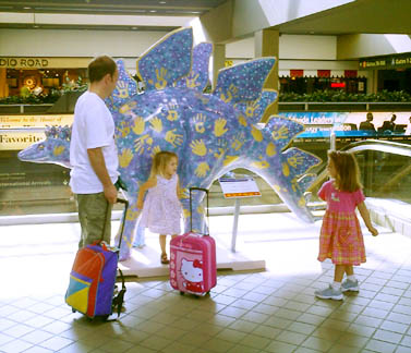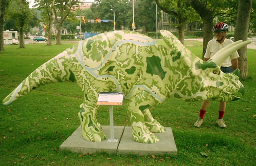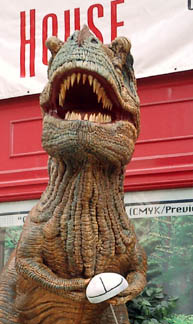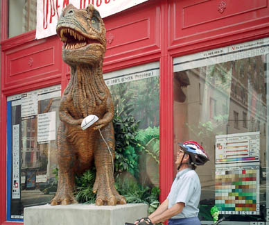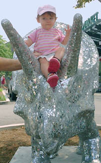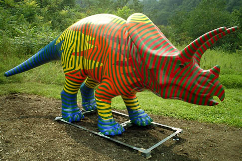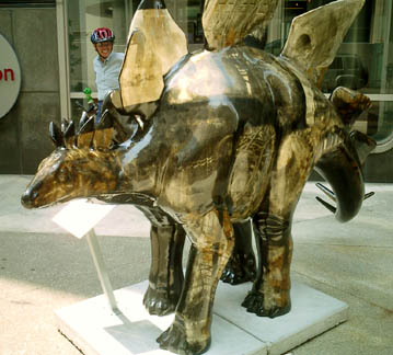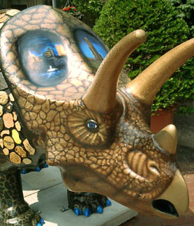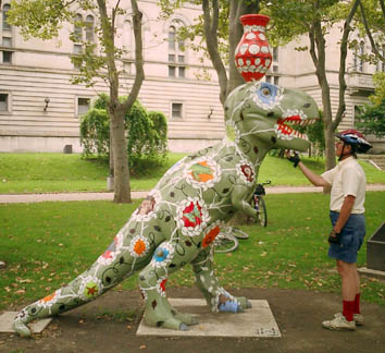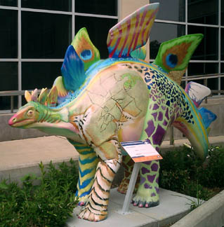 Chicago had cows, now Pittsburgh has dinosaurs. The Carnegie Museums and the City of Pittsburgh are hosting DinoMiteDays, a summer-long city-wide art-in-the-streets event. For us, it's 100 fiberglass dinosaurs. Artists from across the country competed for the chance to decorate them, regional companies have sponsored them, and they're on display in public places around the region. In October they'll be auctioned off to benefit the Carnegie Museum's world-class dinosaur exhibit. On display: